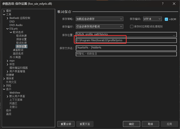 C、 如果如果“保存位置“选择“音轨所在目录“,你无需修改模版,但会导致歌词文件分散不便于管理
