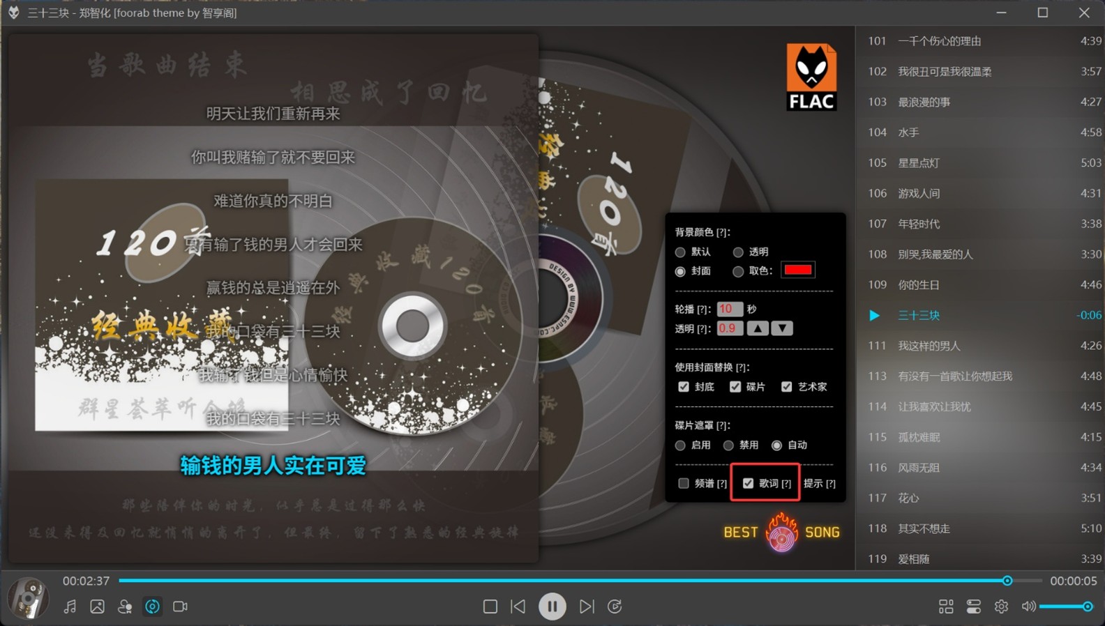 智享阁 foorab 主题 for foobar2000 主题皮肤旋转碟片界面歌词开启使用教程